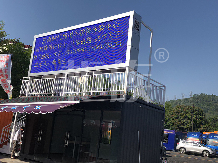 小而精的辦公室,一樓辦公帶遮陽(yáng)棚,側面樓梯可達二樓平臺。承重力強,箱頂豎有大型LED廣告屏。室內設衛生間,可兼任住宿和短時(shí)休息用途。